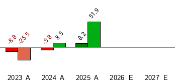 The Projected Sales Growth (F1/F0) looks at the estimated growth rate for the current year. It takes the consensus sales estimate for the current fiscal year (F1) divided by the sales for the last completed fiscal year (F0) (actual if reported, the consensus if not).