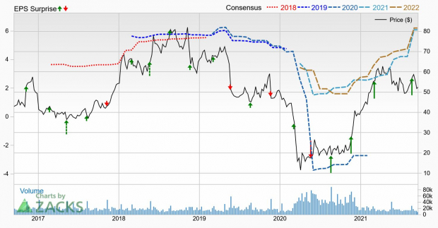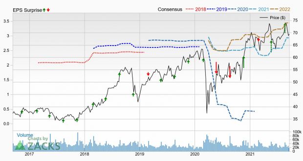 Earnings per share of 88 cents easily surpassed the Zacks Consensus Estimate by more than 69%. The company has amassed an average positive surprise of more than 34% over the past four quarters… and that includes a miss in the fourth quarter of 2020.