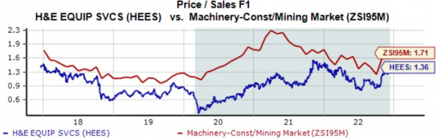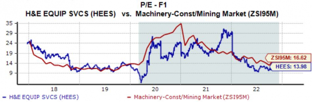 H&E Equipment Services’ valuation multiples aren’t stretched; the company’s shares currently trade at a 13.9X forward earnings multiple, nicely beneath the 16.6X five-year median and the Zacks industry average of 16.6X.