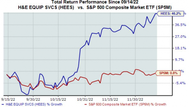 Over the last three months, HEES shares have gone on a stellar run, tacking on more than 45% in value and leaving the S&P 500 in the dust.