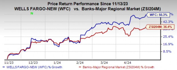 Over the past six months, shares of WFC have jumped 50.3% compared with the industry’s 36.4% growth.