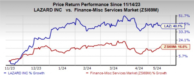 Over the past six months, shares of Lazard have jumped 40.1% compared with the industry’s growth of 16.6%.