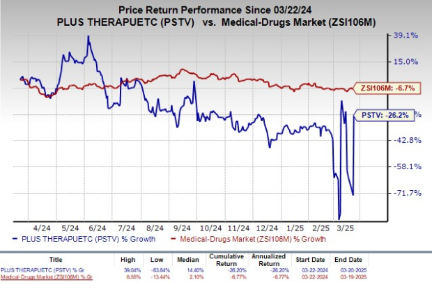 In the past year, shares of Plus Therapeutics have declined 26.2% compared with the industry’s decrease of 6.7%.