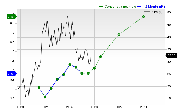 The chart below shows the evolution of forward 12-month Zacks Consensus EPS estimate: