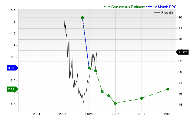The company is expected to earn $0.34 per share for the current quarter, which represents a year-over-year change of -26.1%.