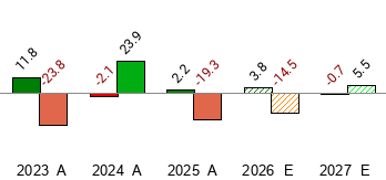 The Projected Sales Growth (F1/F0) looks at the estimated growth rate for the current year. It takes the consensus sales estimate for the current fiscal year (F1) divided by the sales for the last completed fiscal year (F0) (actual if reported, the consensus if not).
