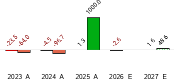 Projected EPS Growth looks at the estimated growth rate for one year. It takes the consensus estimate for the current fiscal year (F1) divided by the EPS for the last completed fiscal year (F0) (actual if reported, the consensus if not).
