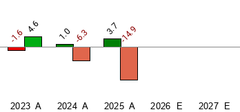 The (F1) EPS Estimate Weekly Change calculates the percentage change in the consensus earnings estimate for the current year (F1) over the last week.