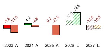 Projected EPS Growth looks at the estimated growth rate for one year. It takes the consensus estimate for the current fiscal year (F1) divided by the EPS for the last completed fiscal year (F0) (actual if reported, the consensus if not).