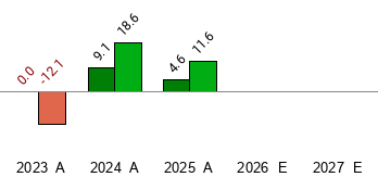 The Projected Sales Growth (F1/F0) looks at the estimated growth rate for the current year. It takes the consensus sales estimate for the current fiscal year (F1) divided by the sales for the last completed fiscal year (F0) (actual if reported, the consensus if not).