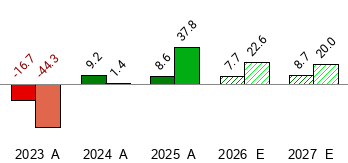 The Projected Sales Growth (F1/F0) looks at the estimated growth rate for the current year. It takes the consensus sales estimate for the current fiscal year (F1) divided by the sales for the last completed fiscal year (F0) (actual if reported, the consensus if not).