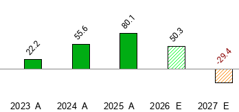 The (F1) EPS Estimate Weekly Change calculates the percentage change in the consensus earnings estimate for the current year (F1) over the last week.