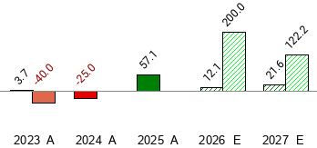 Projected EPS Growth looks at the estimated growth rate for one year. It takes the consensus estimate for the current fiscal year (F1) divided by the EPS for the last completed fiscal year (F0) (actual if reported, the consensus if not).