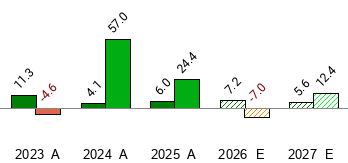 Projected EPS Growth looks at the estimated growth rate for one year. It takes the consensus estimate for the current fiscal year (F1) divided by the EPS for the last completed fiscal year (F0) (actual if reported, the consensus if not).