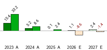 The Projected Sales Growth (F1/F0) looks at the estimated growth rate for the current year. It takes the consensus sales estimate for the current fiscal year (F1) divided by the sales for the last completed fiscal year (F0) (actual if reported, the consensus if not).