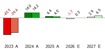 The Projected Sales Growth (F1/F0) looks at the estimated growth rate for the current year. It takes the consensus sales estimate for the current fiscal year (F1) divided by the sales for the last completed fiscal year (F0) (actual if reported, the consensus if not).