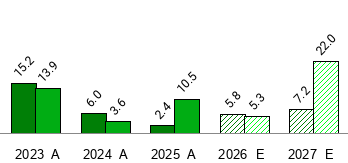 The Projected Sales Growth (F1/F0) looks at the estimated growth rate for the current year. It takes the consensus sales estimate for the current fiscal year (F1) divided by the sales for the last completed fiscal year (F0) (actual if reported, the consensus if not).