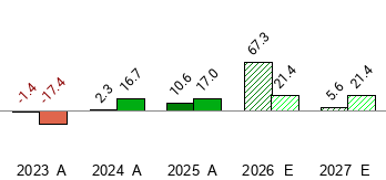 The Projected Sales Growth (F1/F0) looks at the estimated growth rate for the current year. It takes the consensus sales estimate for the current fiscal year (F1) divided by the sales for the last completed fiscal year (F0) (actual if reported, the consensus if not).