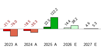 The Projected Sales Growth (F1/F0) looks at the estimated growth rate for the current year. It takes the consensus sales estimate for the current fiscal year (F1) divided by the sales for the last completed fiscal year (F0) (actual if reported, the consensus if not).