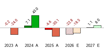 The Projected Sales Growth (F1/F0) looks at the estimated growth rate for the current year. It takes the consensus sales estimate for the current fiscal year (F1) divided by the sales for the last completed fiscal year (F0) (actual if reported, the consensus if not).