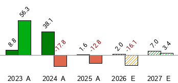 The Projected Sales Growth (F1/F0) looks at the estimated growth rate for the current year. It takes the consensus sales estimate for the current fiscal year (F1) divided by the sales for the last completed fiscal year (F0) (actual if reported, the consensus if not).