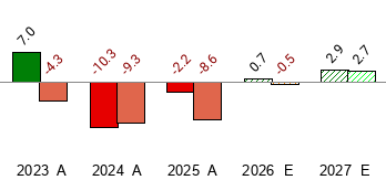 The Projected Sales Growth (F1/F0) looks at the estimated growth rate for the current year. It takes the consensus sales estimate for the current fiscal year (F1) divided by the sales for the last completed fiscal year (F0) (actual if reported, the consensus if not).