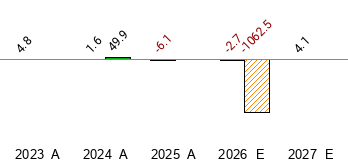 The (F1) EPS Estimate Weekly Change calculates the percentage change in the consensus earnings estimate for the current year (F1) over the last week.