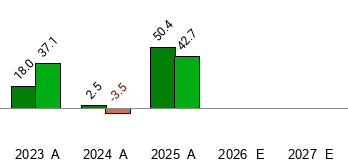 Projected EPS Growth looks at the estimated growth rate for one year. It takes the consensus estimate for the current fiscal year (F1) divided by the EPS for the last completed fiscal year (F0) (actual if reported, the consensus if not).