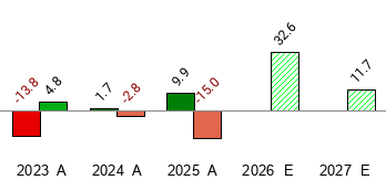 The Projected Sales Growth (F1/F0) looks at the estimated growth rate for the current year. It takes the consensus sales estimate for the current fiscal year (F1) divided by the sales for the last completed fiscal year (F0) (actual if reported, the consensus if not).