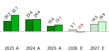 The Projected Sales Growth (F1/F0) looks at the estimated growth rate for the current year. It takes the consensus sales estimate for the current fiscal year (F1) divided by the sales for the last completed fiscal year (F0) (actual if reported, the consensus if not).