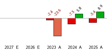 The Projected Sales Growth (F1/F0) looks at the estimated growth rate for the current year. It takes the consensus sales estimate for the current fiscal year (F1) divided by the sales for the last completed fiscal year (F0) (actual if reported, the consensus if not).