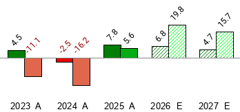 The Projected Sales Growth (F1/F0) looks at the estimated growth rate for the current year. It takes the consensus sales estimate for the current fiscal year (F1) divided by the sales for the last completed fiscal year (F0) (actual if reported, the consensus if not).